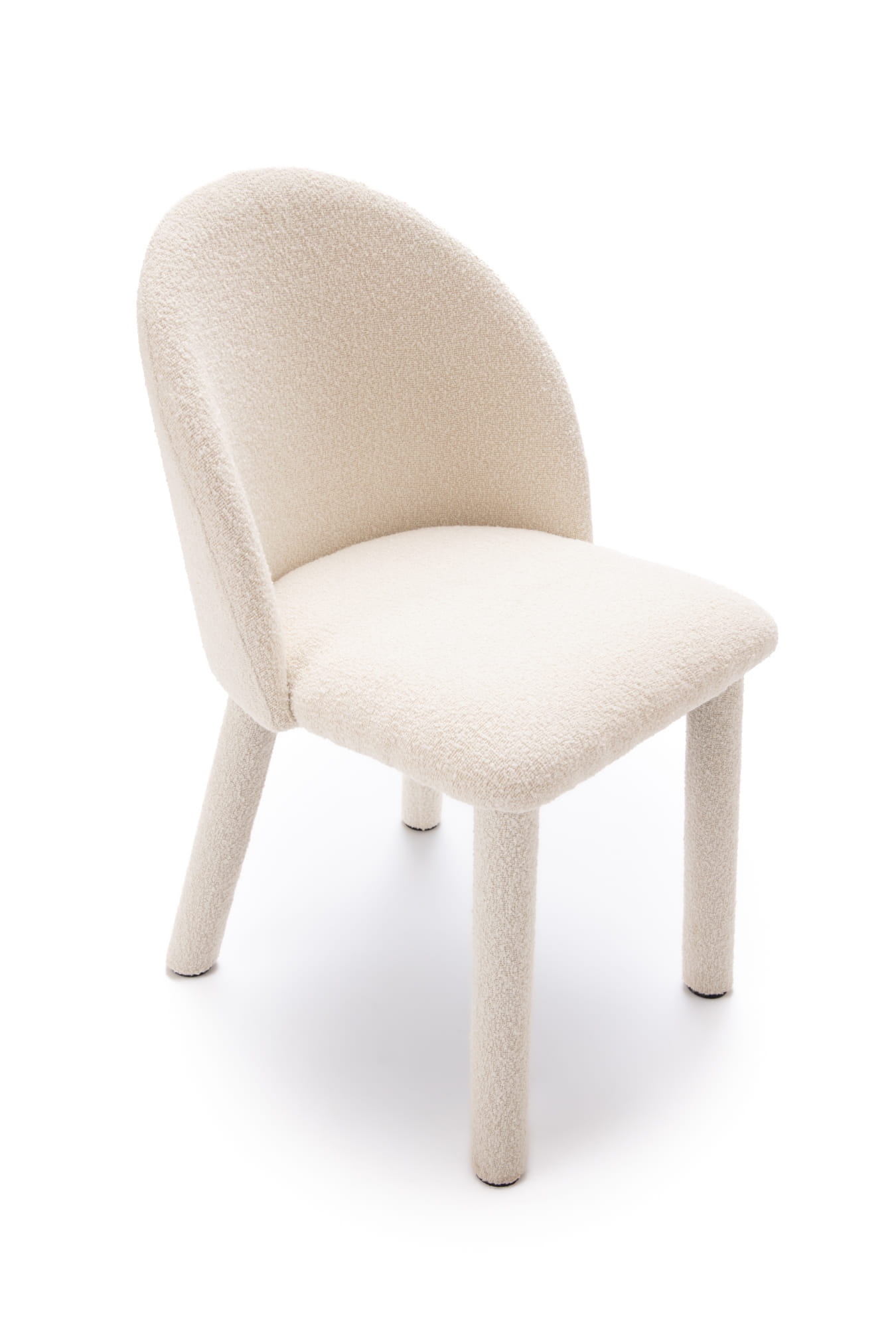 Krzesło Kawaī Bouclé zostało zaprojektowane z myślą o wnętrzach, w których liczy się komfort, subtelny design i spójna estetyka. Miękka, obła forma siedziska oraz tapicerka typu bouclé sprawiają, że krzesło prezentuje się lekko, a jednocześnie daje poczucie przytulności już od pierwszego spojrzenia.
