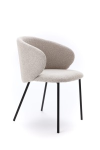 Czarna konstrukcja nadaje krzesłu nowoczesny, loftowy charakter i podkreśla kontrast między delikatną fakturą tkaniny a zdecydowaną formą podstawy. To połączenie sprawia, że Kukkī doskonale odnajduje się w aranżacjach industrialnych, nowoczesnych, minimalistycznych, a także w przestrzeniach inspirowanych stylem japandi.