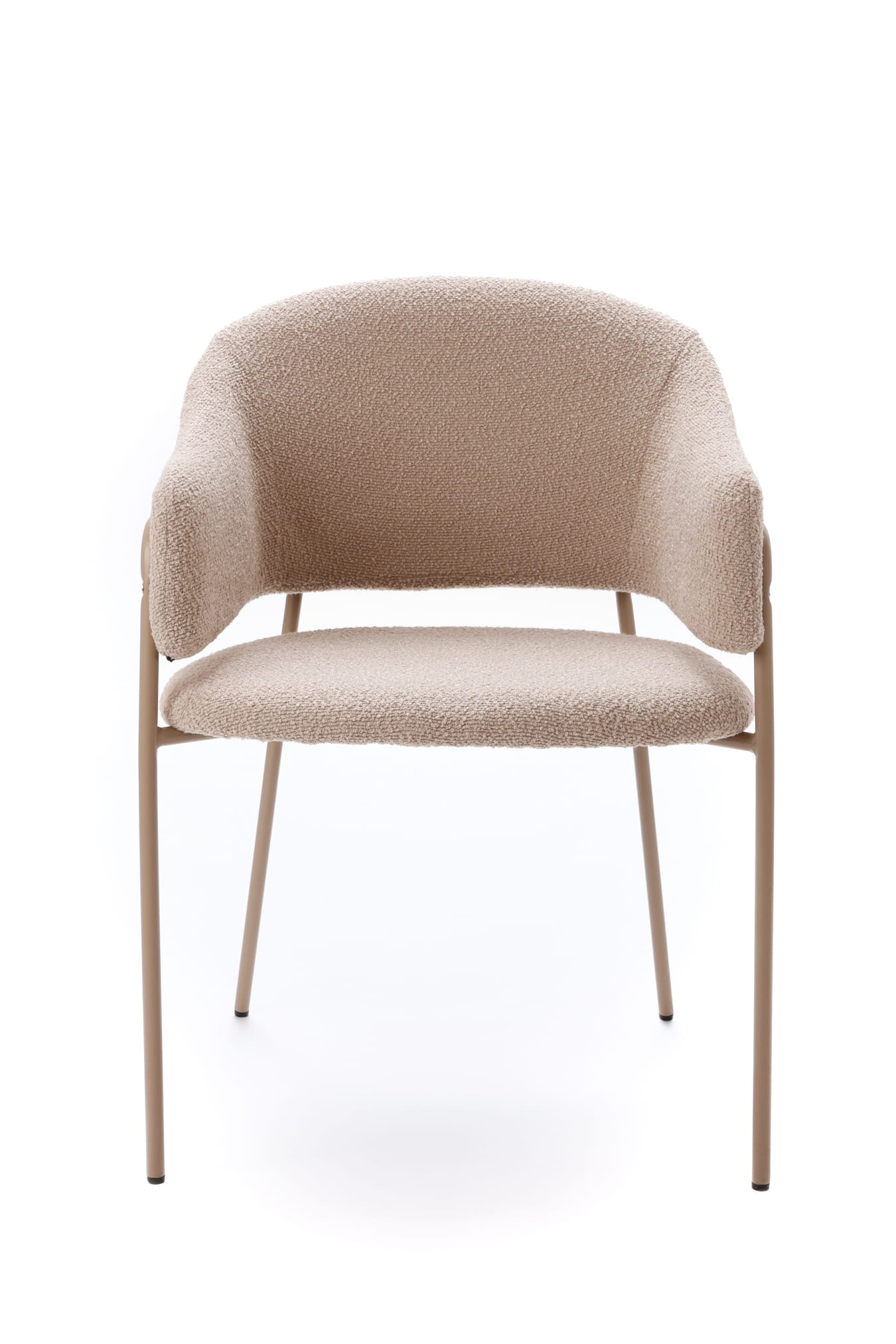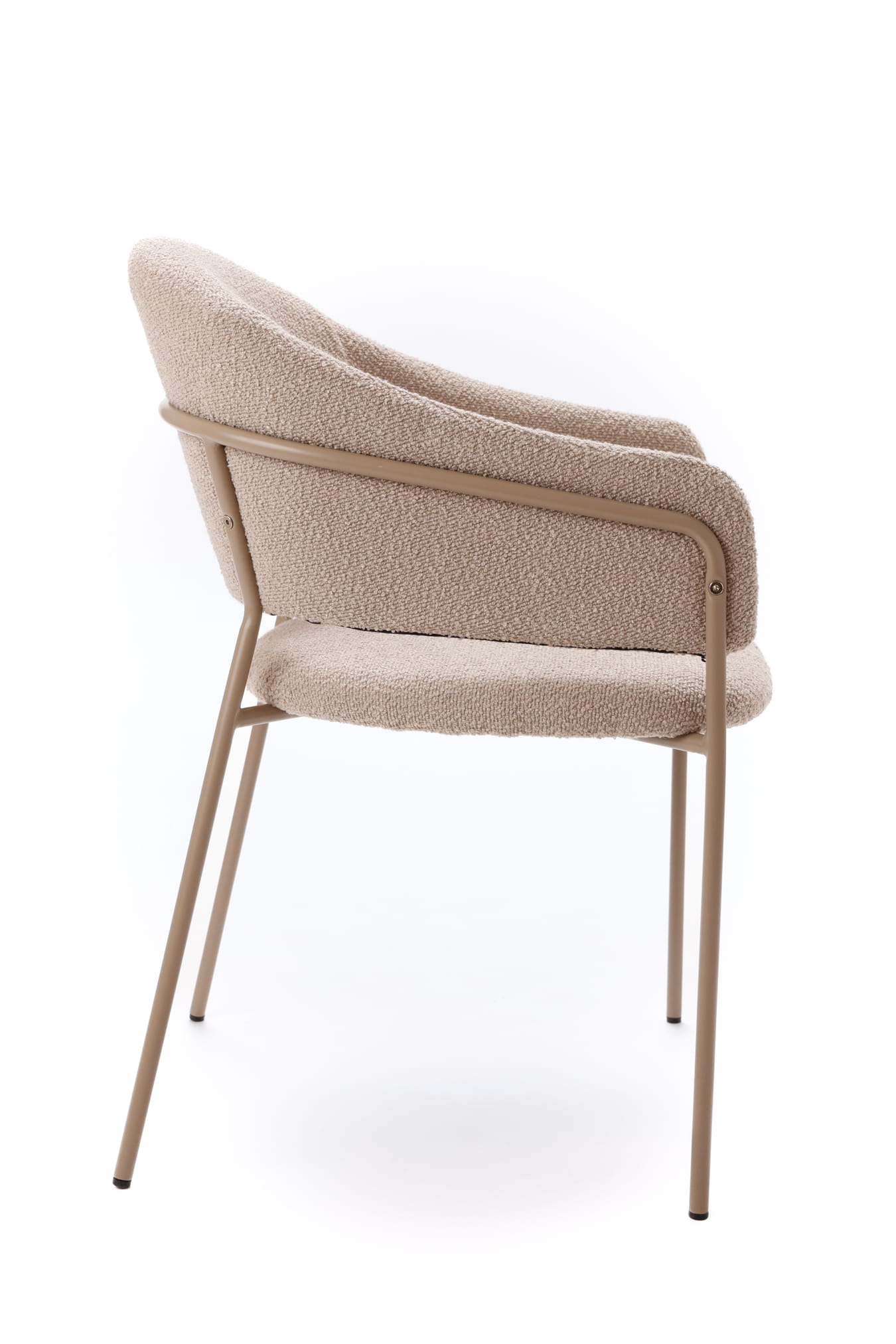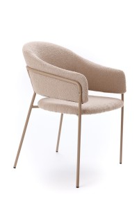 Stabilna metalowa konstrukcja w kolorze beżowym, malowana proszkowo, nadaje całości lekkości i nowoczesnego charakteru. Smukłe nogi optycznie odciążają bryłę, dzięki czemu krzesło świetnie sprawdzi się zarówno w jadalni, salonie, jak i w eleganckich przestrzeniach komercyjnych.