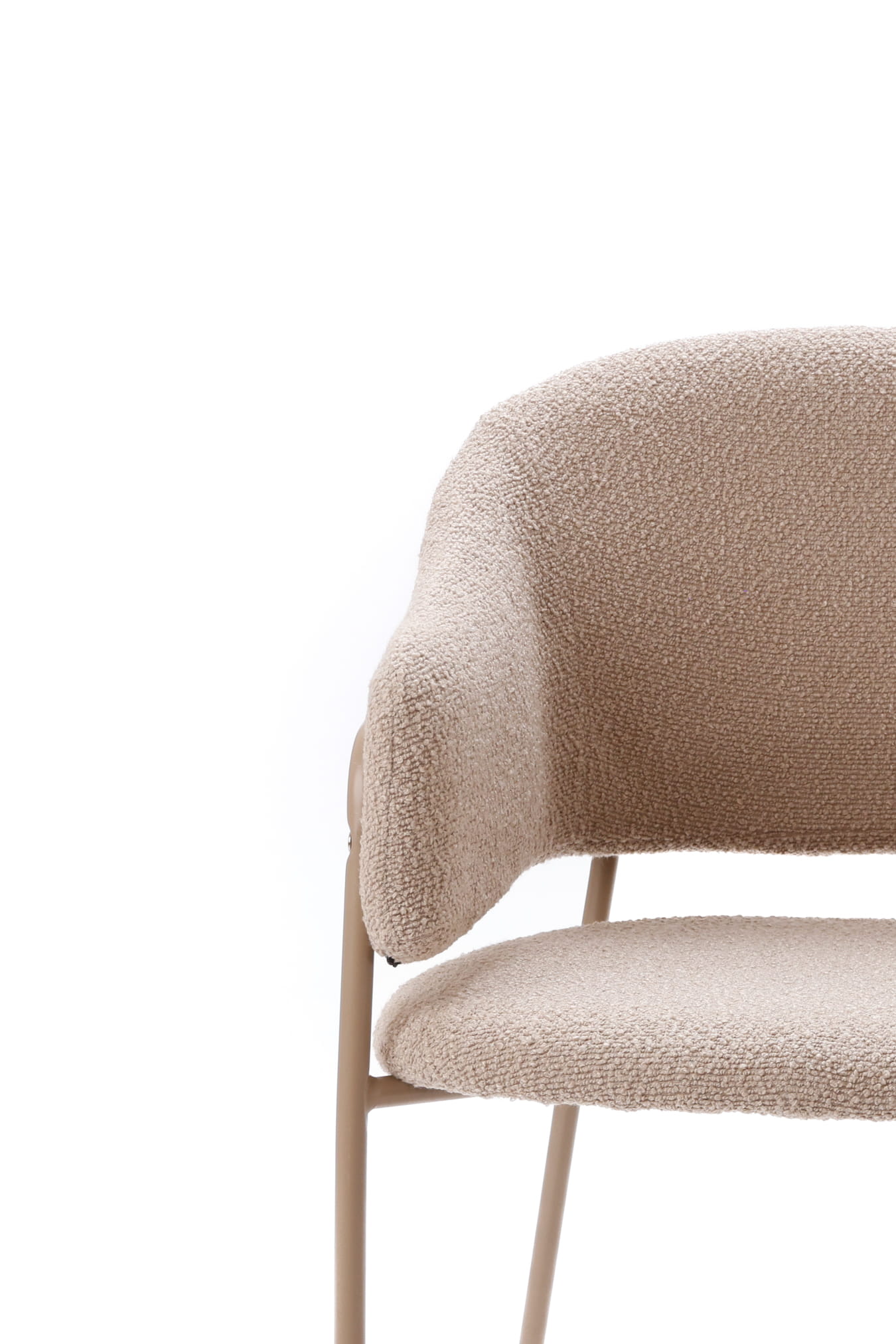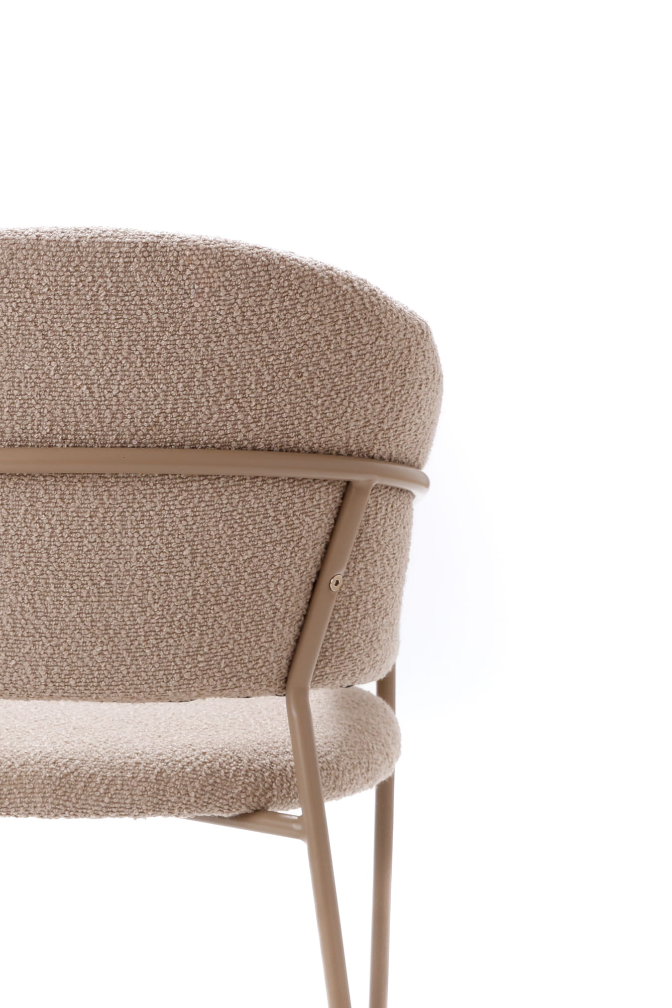 Materiał: tkanina bouclé (siedzisko i oparcie), metal malowany proszkowo