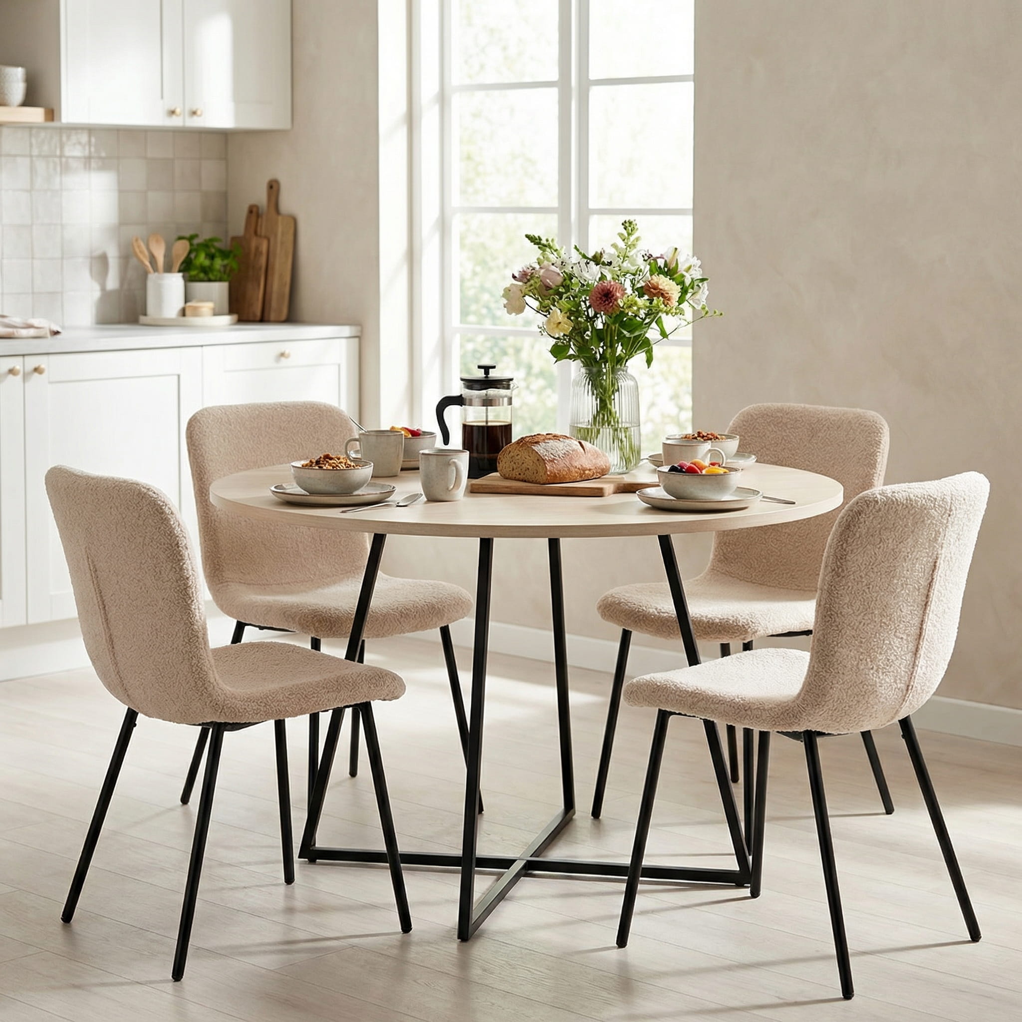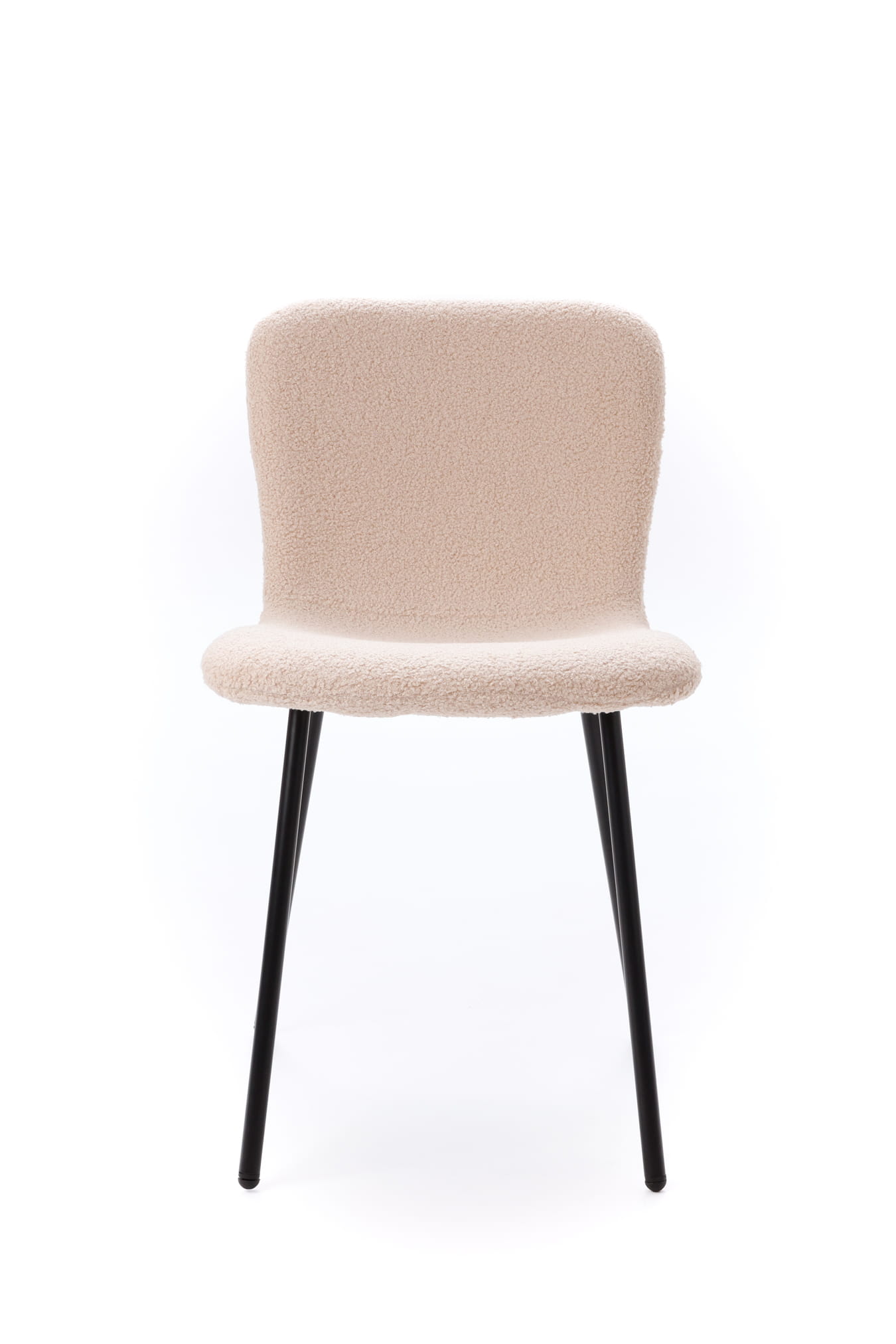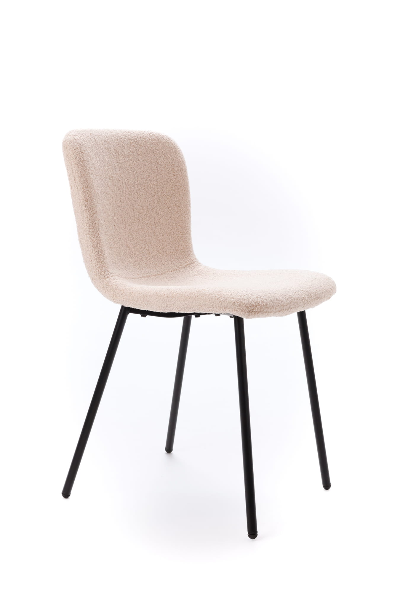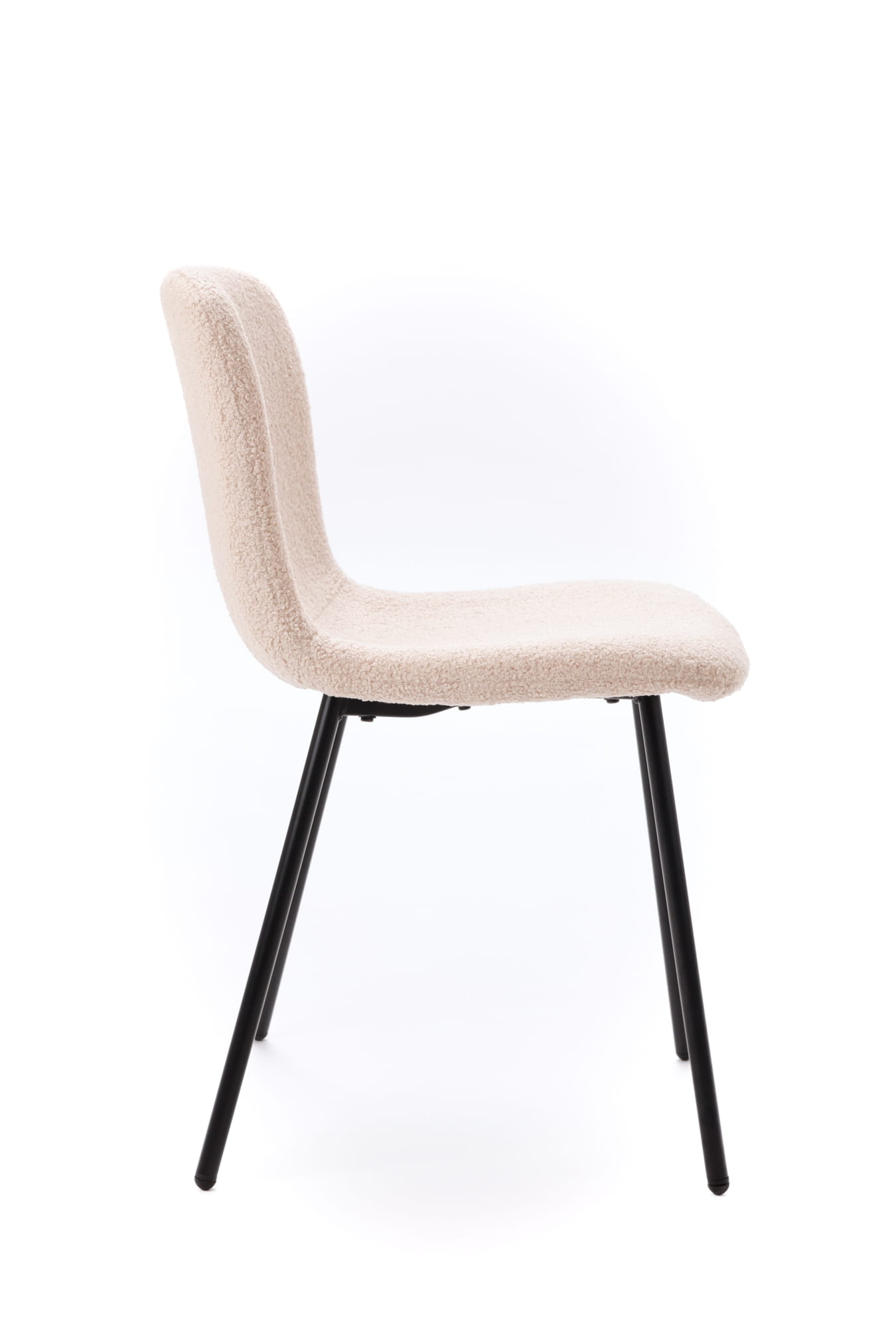 Krzesło Yasu to miękka, minimalistyczna forma, która wnosi do wnętrza ciepło i wizualny spokój. Tapicerka teddy w beżowym odcieniu połączona z czarnymi nogami tworzy subtelny kontrast idealny do jadalni lub salonu. Sprzedawane w zestawie 4 sztuk.