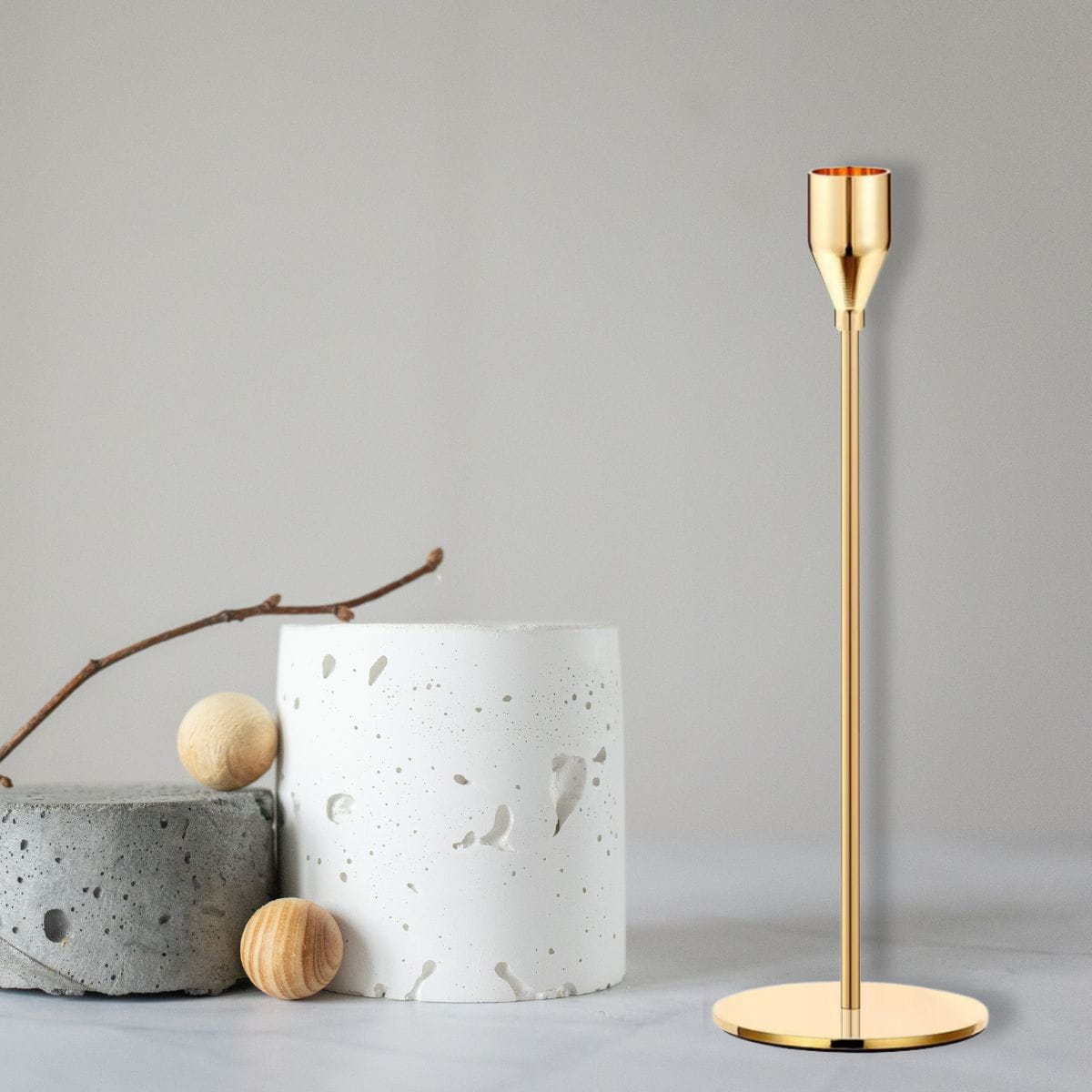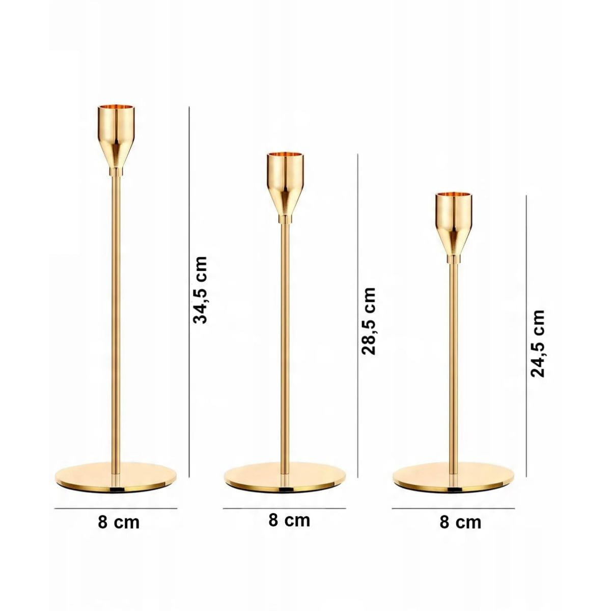 Złote wykończenie sprawia, że świeczniki pięknie odbijają światło świec i tworzą przytulną, nastrojową atmosferę. Prosta forma, smukłe proporcje i subtelny połysk czynią je idealnym dodatkiem do wnętrz klasycznych, eleganckich, ale też tych z nutą nowoczesności czy glamour. To dekoracja, która sprawdzi się zarówno na świątecznym stole, jak i podczas codziennych chwil relaksu.
