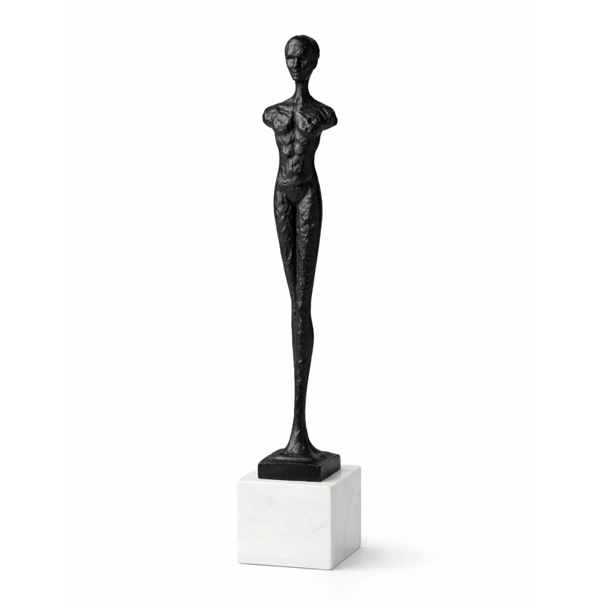 To produkt bezkompromisowy pod względem jakości. Sylwetka mężczyzny została wykonana z wysokogatunkowego czarnego metalu, który gwarantuje trwałość i odporność na upływ czasu. Całość osadzono na masywnej, kwadratowej podstawie z naturalnego marmuru (7x7 cm), co nie tylko zapewnia nienaganną stabilność, ale również podkreśla ekskluzywny charakter figurki. Kontrast matowego metalu i chłodnego kamienia to kwintesencja współczesnego designu.