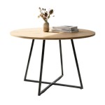 Stół Sanka w kolorze dąb artisan to połączenie naturalnego rysunku drewna z nowoczesną, metalową konstrukcją. Okrągły blat i czarny stelaż tworzą harmonijną całość, idealną do codziennych spotkań.