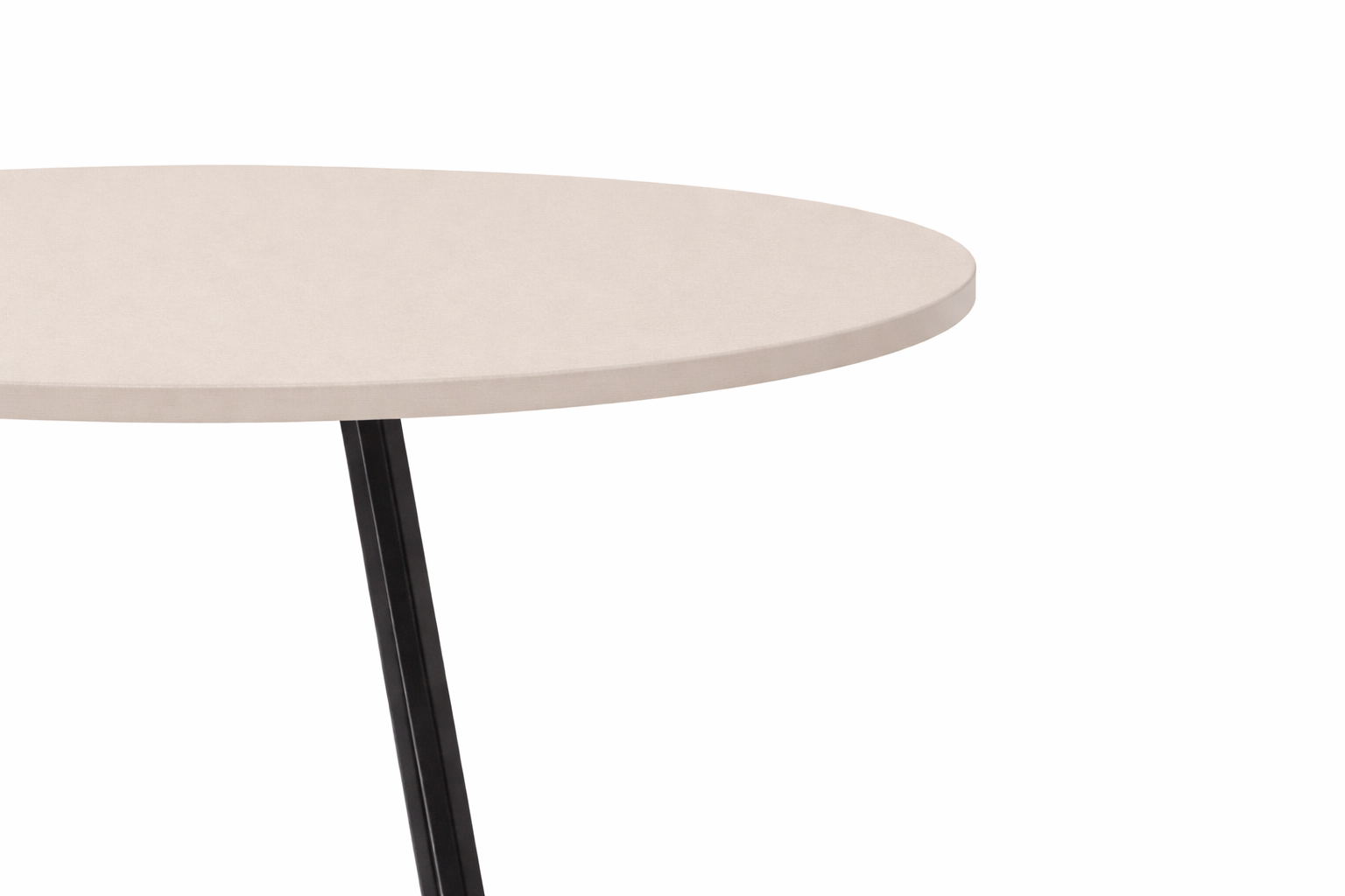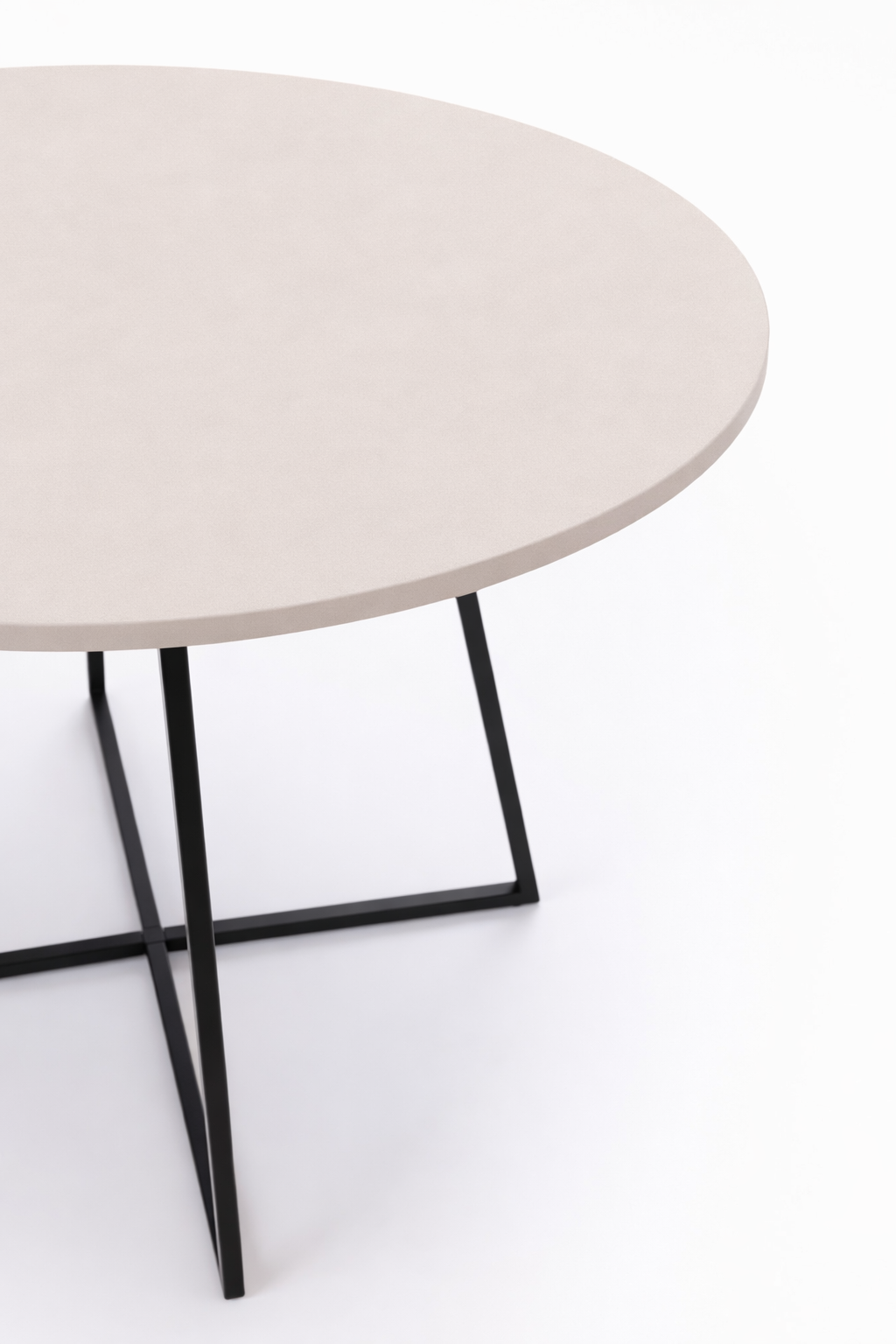 Stół Sanka w kolorze kaszmiru to nowoczesna forma oparta na prostocie i proporcji. Okrągły blat w ciepłym odcieniu łączy się z czarnym, metalowym stelażem, tworząc ponadczasowy mebel do codziennych spotkań.