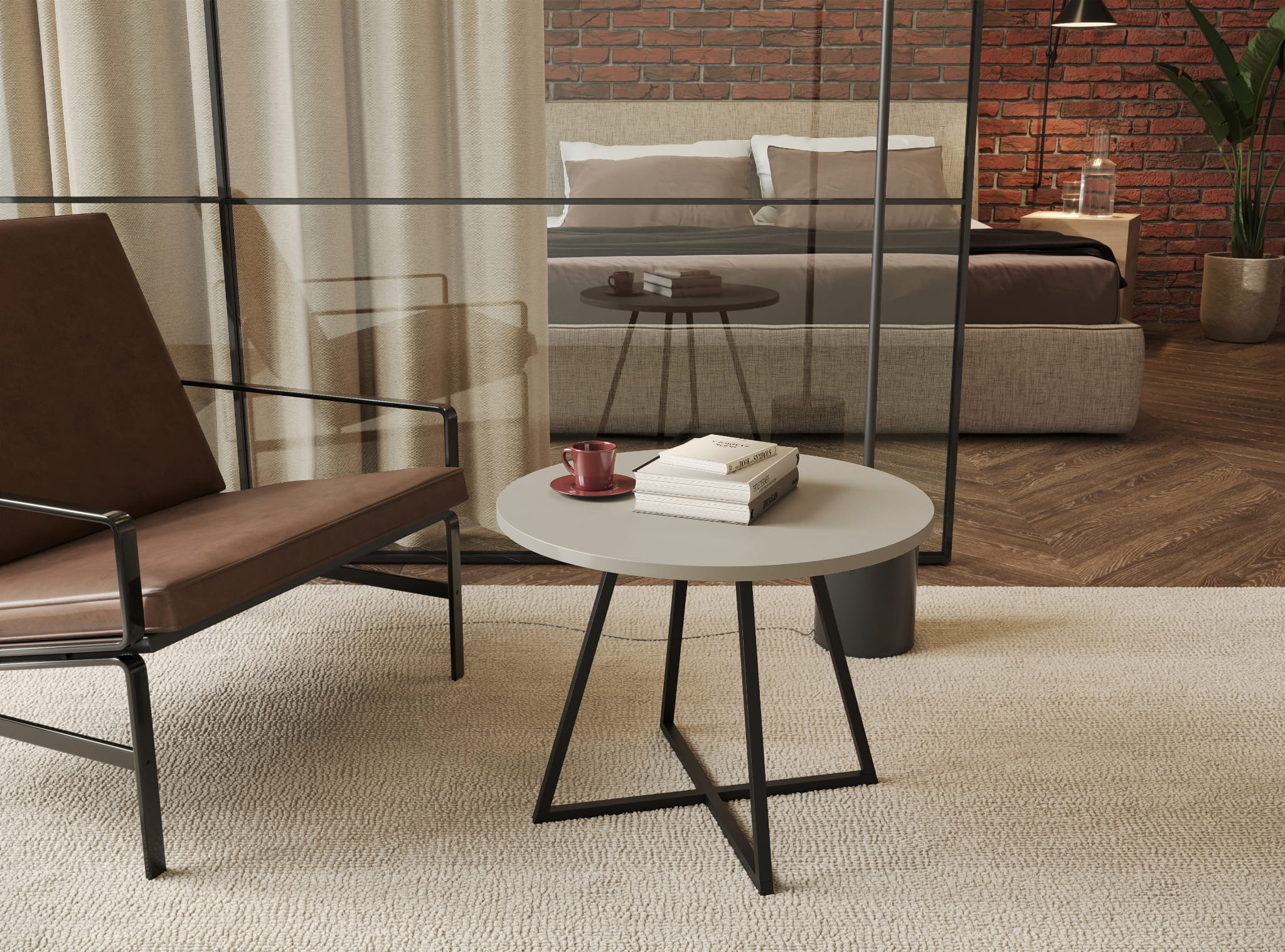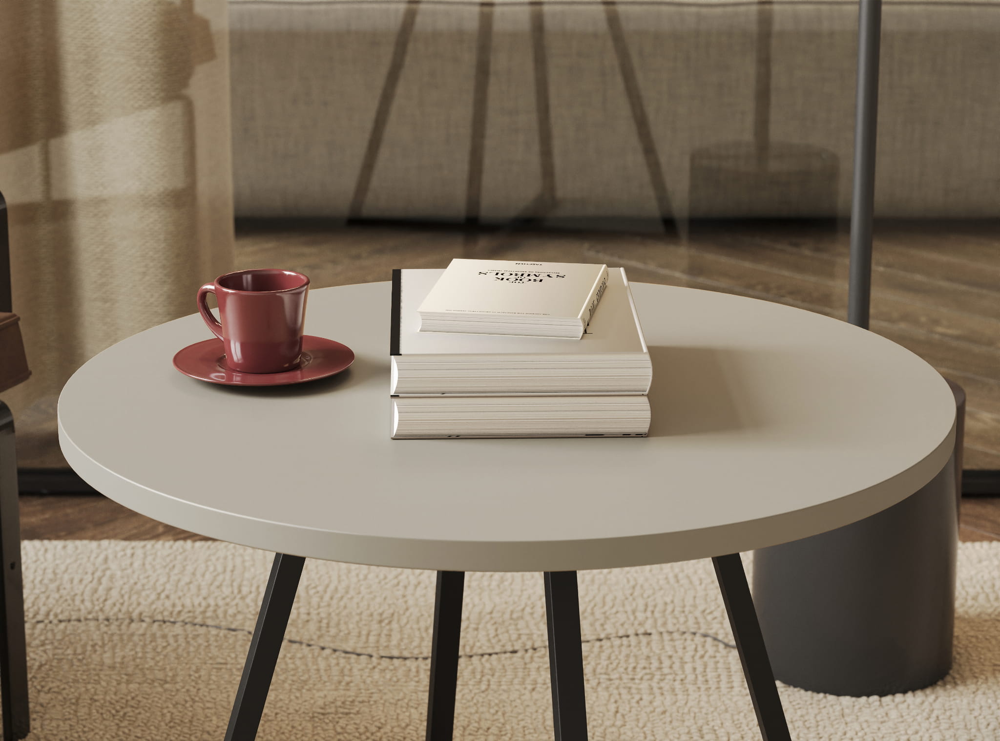 Stolik kawowy Sanka Kaszmir – blat w odcieniu beżowego kaszmiru i czarne nogi. Subtelny kontrast, który łączy elegancję i nowoczesną prostotę.