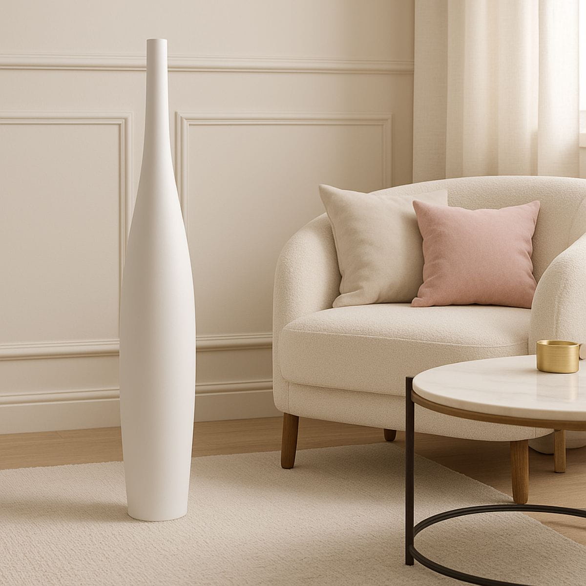 Wazon Sora Slim w wersji białej to wyjątkowy dodatek, który łączy subtelność i nowoczesny minimalizm. Jego smukła, wysoka sylwetka (70 cm) doskonale sprawdzi się jako dekoracja podłogowa, nadając przestrzeni wyjątkowej elegancji. Delikatny, matowy odcień bieli wpisuje się w estetykę japandi i skandynawskiego minimalizmu, dzięki czemu wazon z łatwością odnajdzie się zarówno w jasnych, jak i kontrastowych aranżacjach.