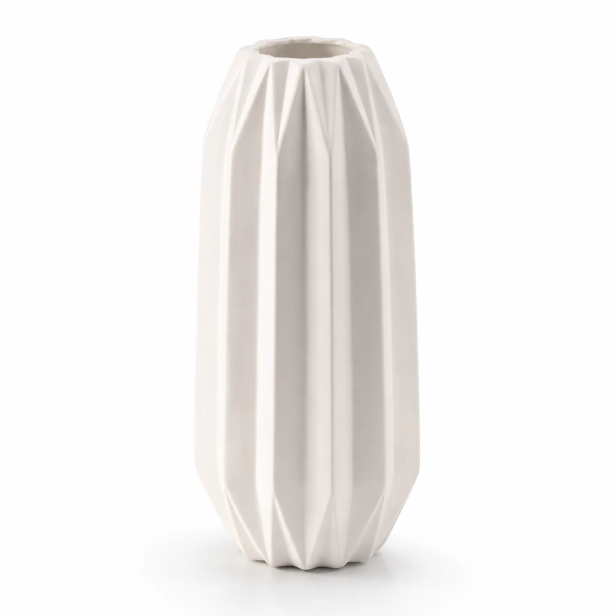 Fundamentem modelu Riyo L jest ceramika najwyższej jakości, która gwarantuje solidność i trwałość przez lata. Matowe wykończenie w czystej bieli jest niezwykle szlachetne w dotyku i łatwe w pielęgnacji. O Twoje bezpieczeństwo i meble dbają trzy gumowe podkładki antypoślizgowe, ukryte u podstawy (średnica 10 cm). Zapewniają one nienaganną stabilność wazonu i eliminują ryzyko zarysowania nawet najdelikatniejszych powierzchni.