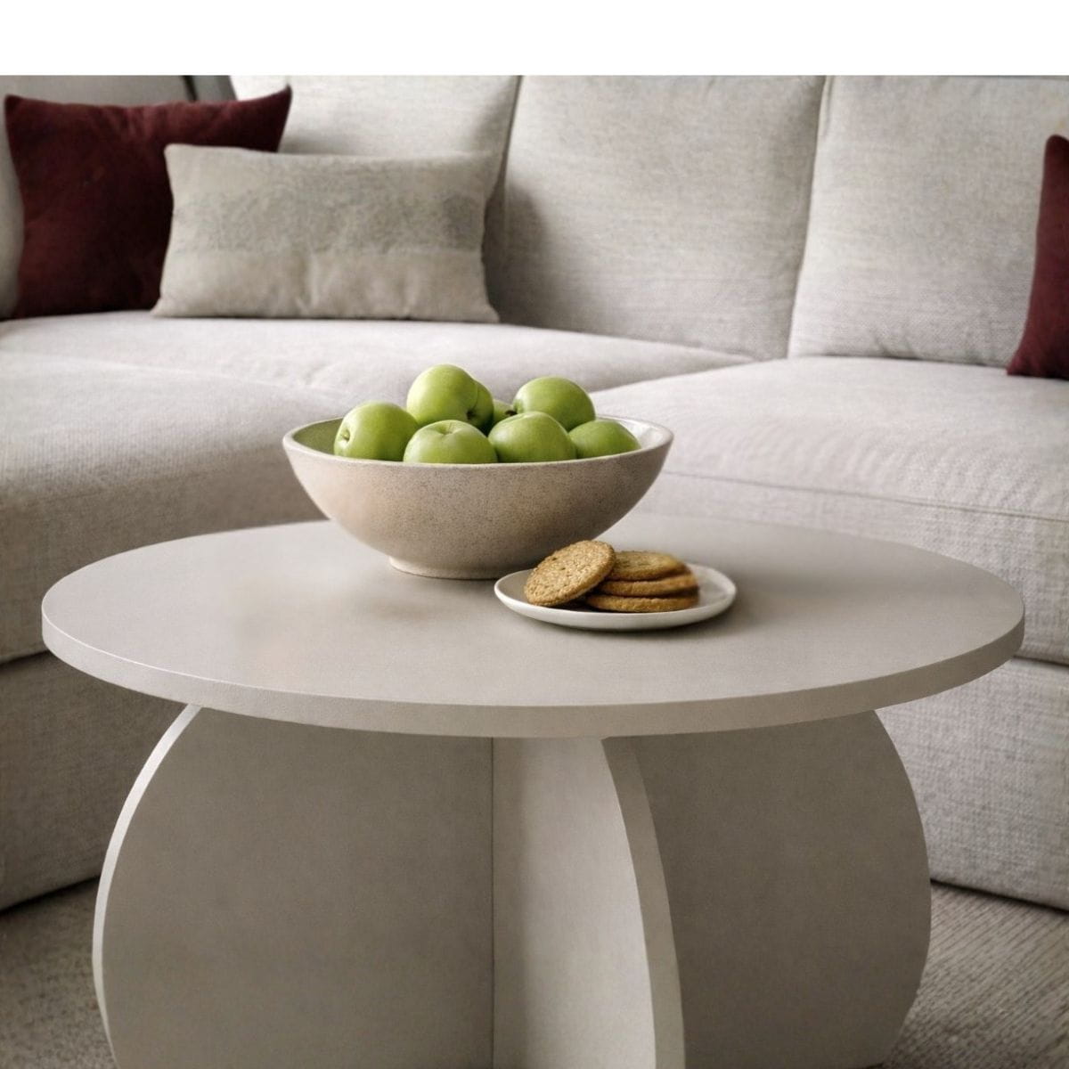 Stolik kawowy Yumi S w kolorze kaszmir to elegancki, okrągły mebel o uniwersalnej średnicy 70 cm — idealny do nowoczesnych salonów i stref wypoczynkowych. Jego minimalistyczna forma i jasna barwa tworzą spokojny klimat przestrzeni i ułatwiają aranżację wnętrza.