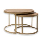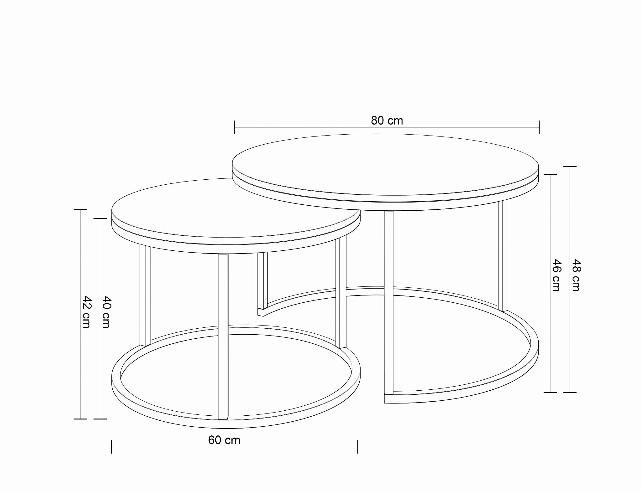 Większy stolik o średnicy 80 cm oraz mniejszy o średnicy 60 cm tworzą zestaw, który możesz zestawić obok sofy, fotela czy w centralnej strefie salonu. Ich okrągłe blaty sprzyjają kontaktom i codziennym rytuałom – od kawy z przyjaciółmi, przez rodzinny deser, aż po wieczorną lekturę.