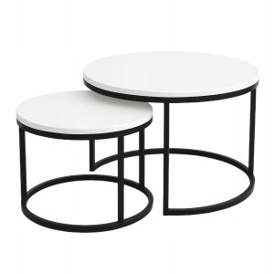 Zestaw stolików kawowych Yuo Sui Biały to praktyczne rozwiązanie dla osób, które cenią jasne, optycznie powiększające przestrzeń meble. W komplecie znajdują się dwa stoliki – większy o średnicy 70 cm i mniejszy o średnicy 50 cm. Dzięki różnicy wysokości (46 i 40 cm) można je częściowo wsunąć jeden pod drugi lub ustawić osobno, w różnych częściach salonu.