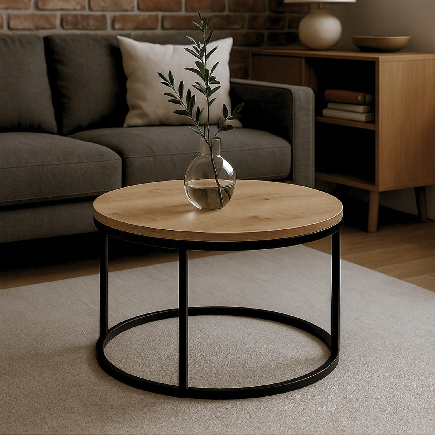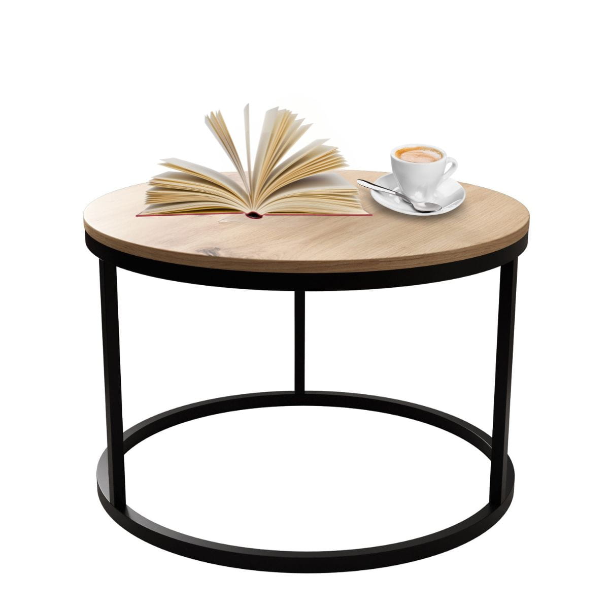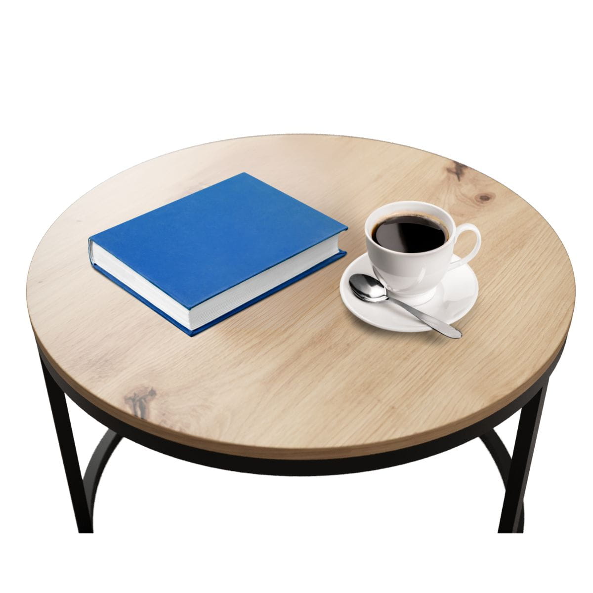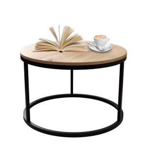 Stolik kawowy Yuo Dąb Artisan to mebel, który łączy naturalny wygląd drewna z nowoczesnym minimalizmem. Okrągły blat o średnicy 60 cm w dekorze dąb artisan pięknie eksponuje wzór słojów drewna wprowadzając do wnętrza przytulny, ciepły klimat. Czarne, metalowe nogi stanowią kontrastowe dopełnienie, które nadaje całości eleganckiego i współczesnego charakteru.