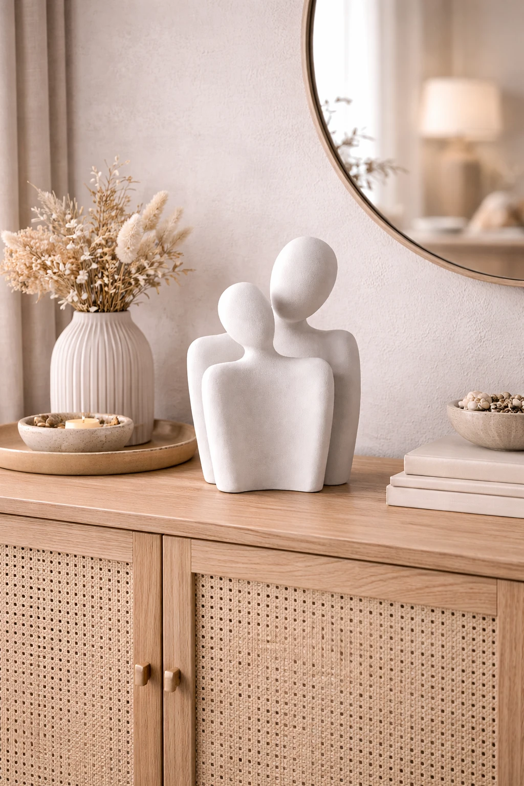 Minimalizm to wybór świadomy. Prosta, nieprzesadzona forma figurek jest manifestem przeciwko tandecie. Wykonane z wysokiej jakości materiału o matowym wykończeniu, rzeźby są aksamitne w dotyku i niezwykle eleganckie. Ich surowa estetyka pozwala skupić się na tym, co najważniejsze – na formie i emocjach, jakie wywołują. To produkt trwały, ponadczasowy i odporny na zmieniające się trendy.